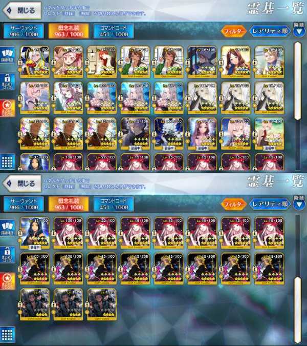 引退 星5鯖100体 宝具2以上多...