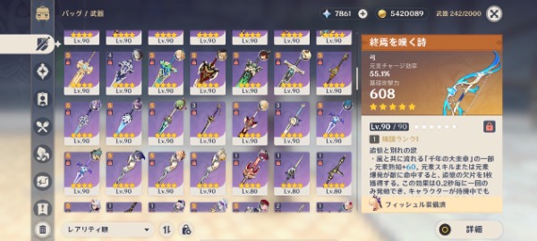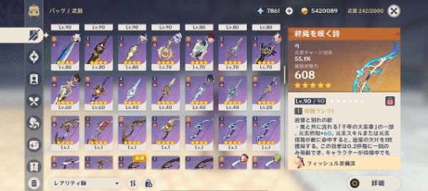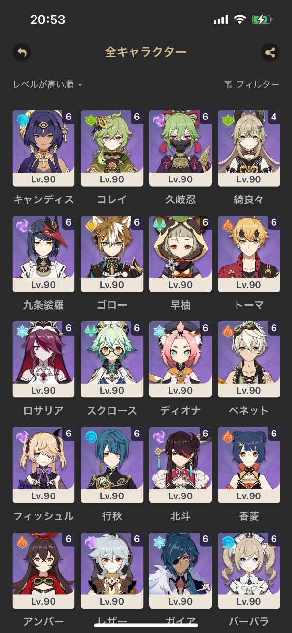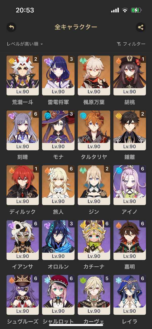 レベル80以上のキャラクターは天賦と聖遺物サブステまで厳選済み