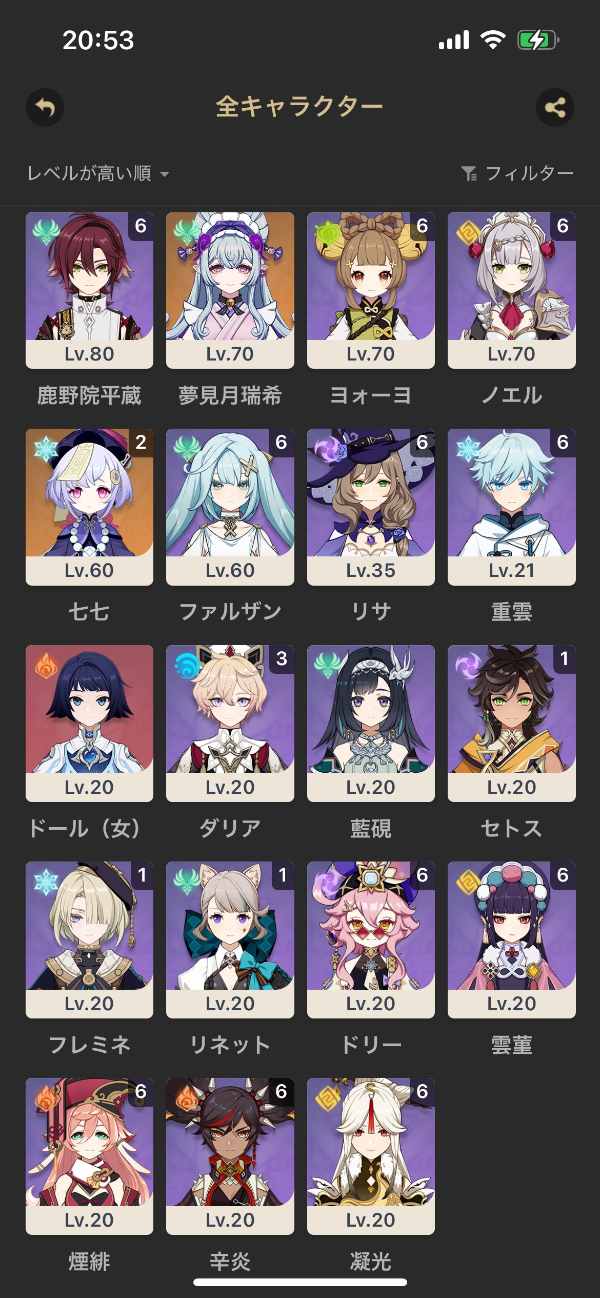 フリーナ完凸など 人権高凸多数 キャラ大半育成済み 引退アカウント