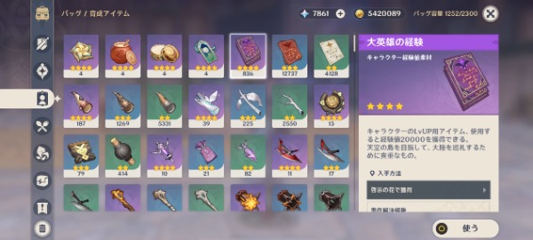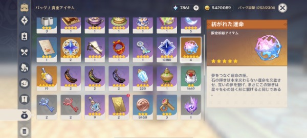 週ボス素材や汎用素材等の育成リソース多数所持