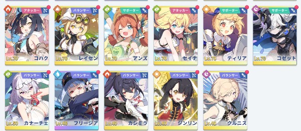 全属性 アタッカー90Lv 支援70Lv以上です。