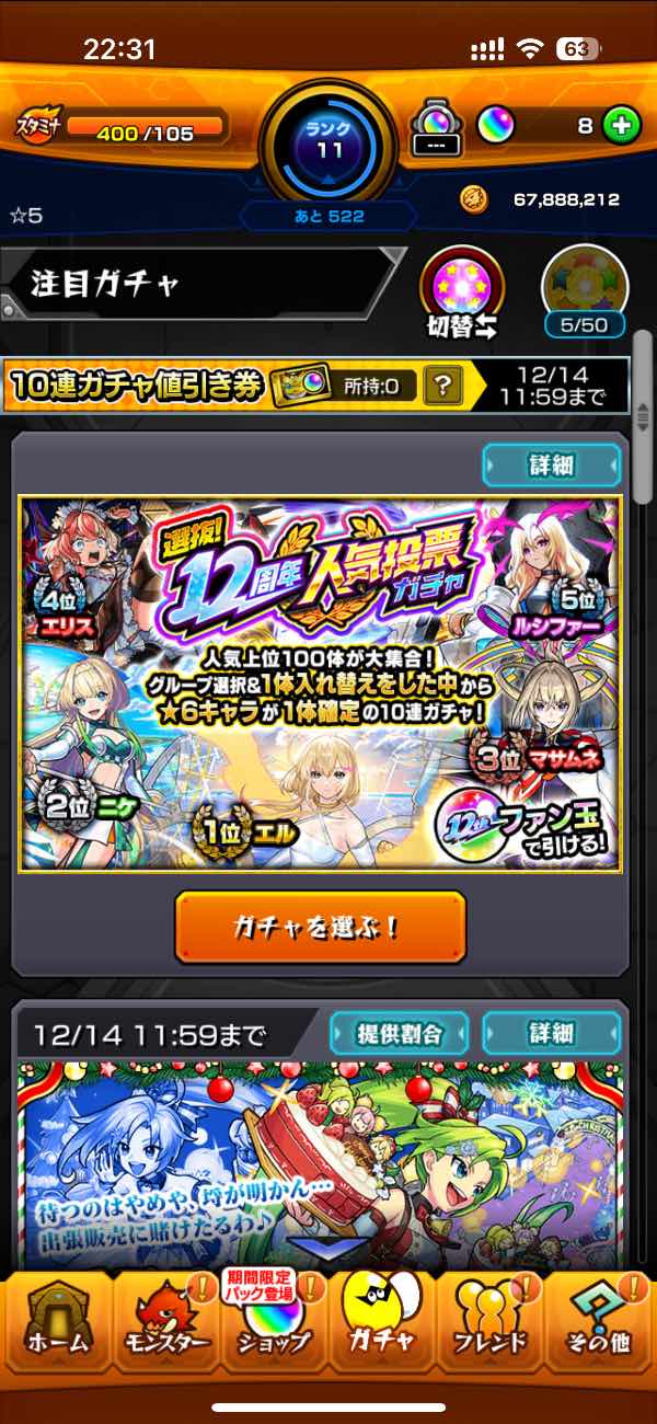 人気投票ガチャ未使用。