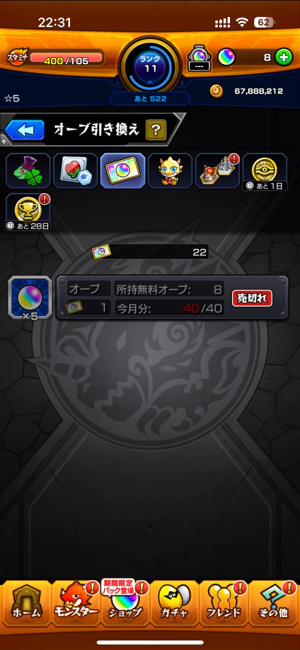 オーブチケ22枚✨️(今月40枚使用済み)