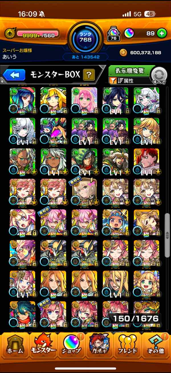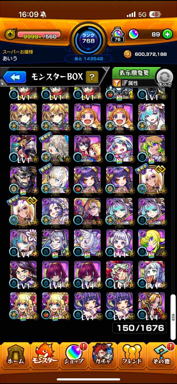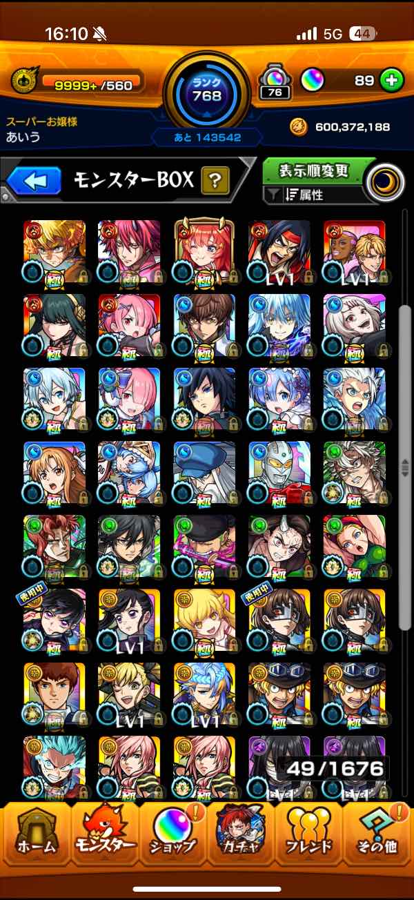 ガチャキャラ700体以上所持