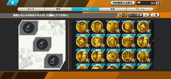 それとも所持メダルの一覧になりますか?