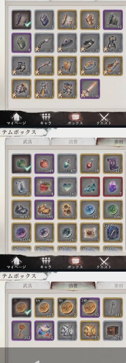 なのでアイテムの増減あり