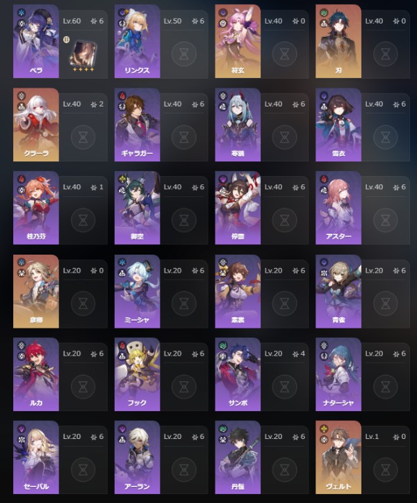 星5キャラ34 引退垢