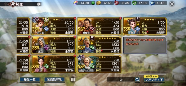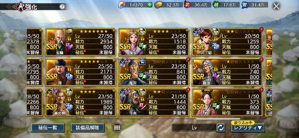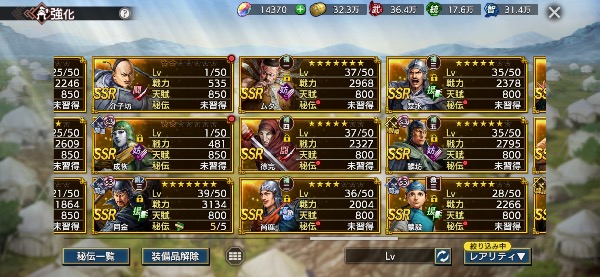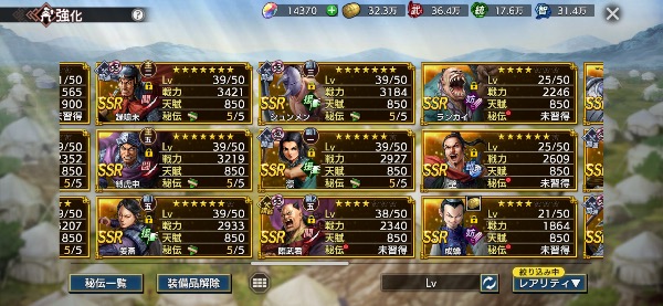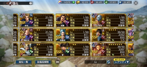 (将星印アイテム温存の為、凸をしてないキャラもあります)