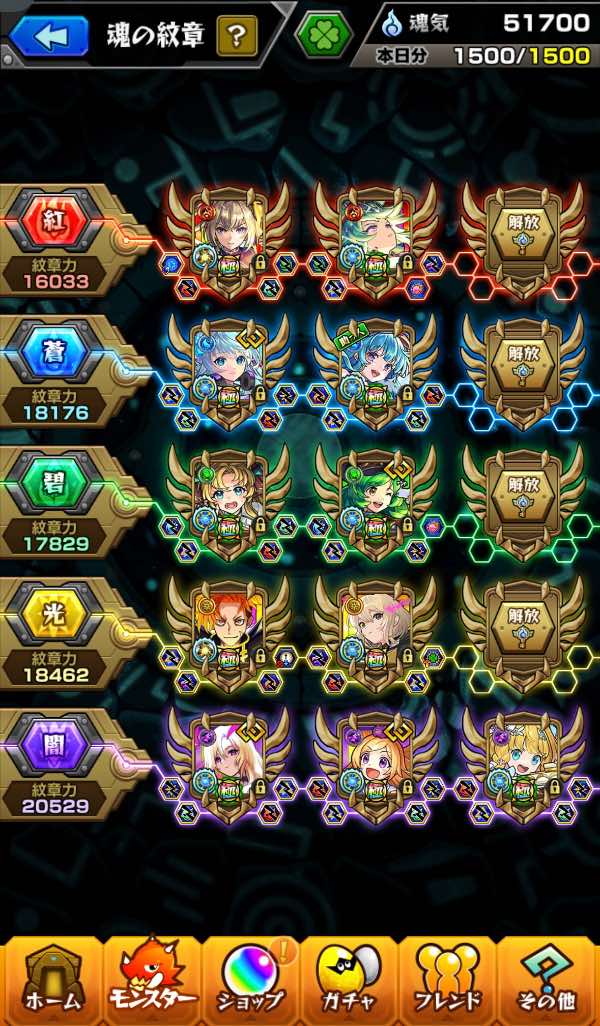ランク2015 ガチャ限5種運極。...