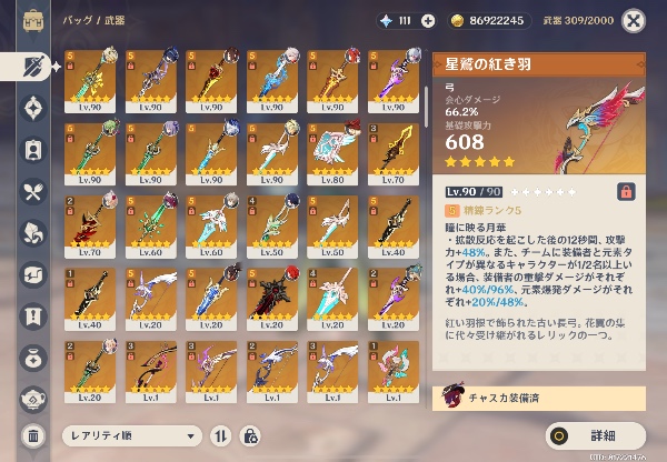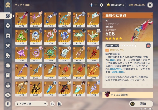 •⭐︎5武器 58本 アップロードされている画像を参照ください。