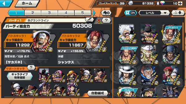 ワンピース バウンティラッシュであなたへおすすめのアカウントデータ