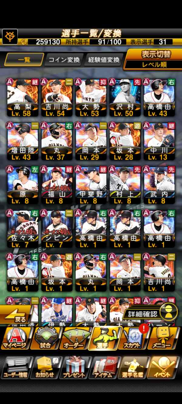 プロスピA(プロ野球スピリッツA) 最強!巨人純正 !シピン、王貞治、岡本和真、メルセデス 、高橋優貴 など!エナジー400以上|マツブシマーケット