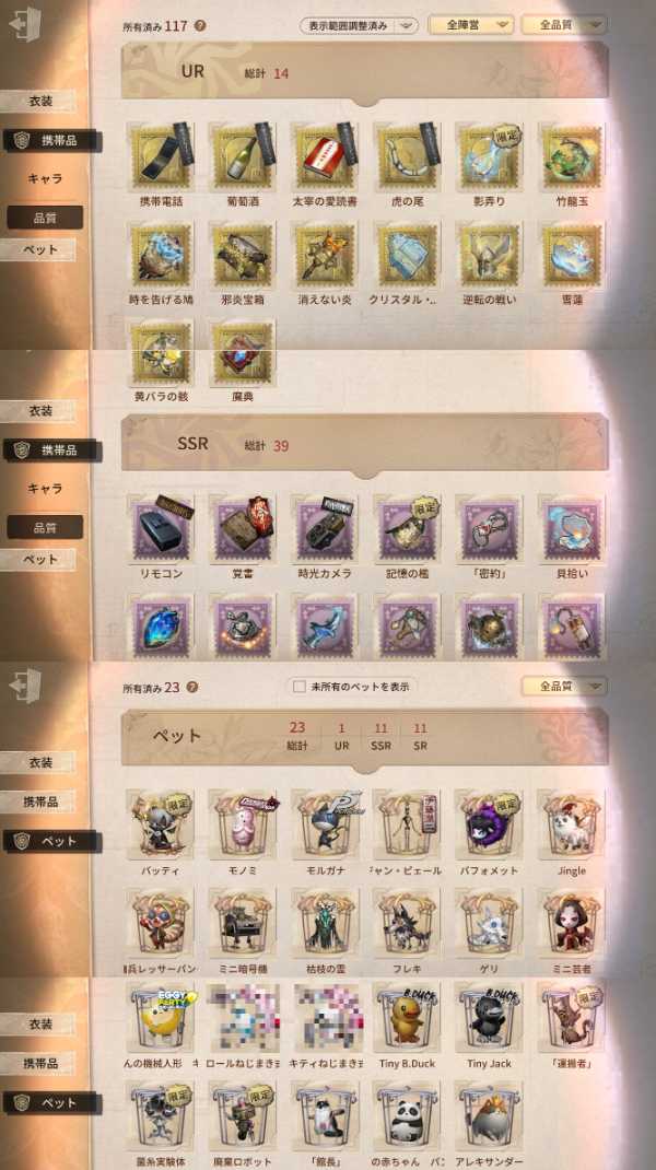 UR衣装38種。限定11着。ID7桁。...