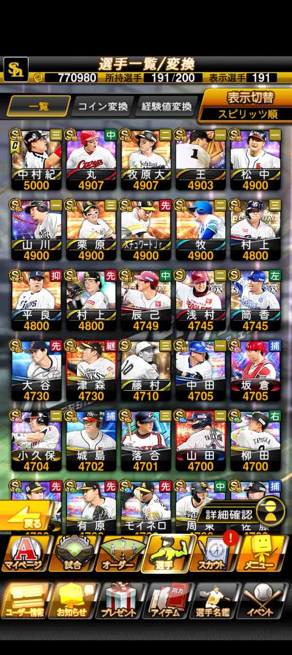 プロ野球スピリッツ2024-2025 【12球団+鷹純正】最新中村紀 最高スピ11.4↑✨️ Aランク250 限凸×10|マツブシマーケット