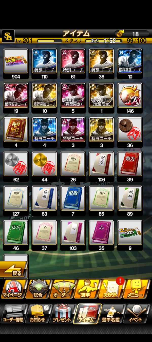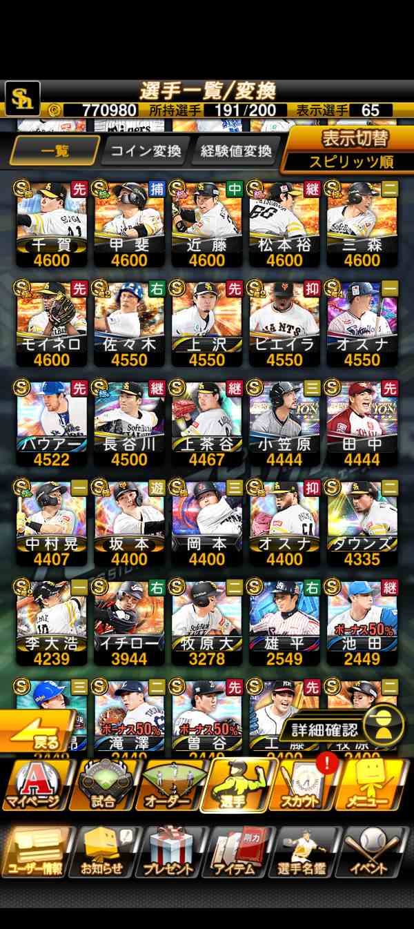 プロスピAの引退アカウントです