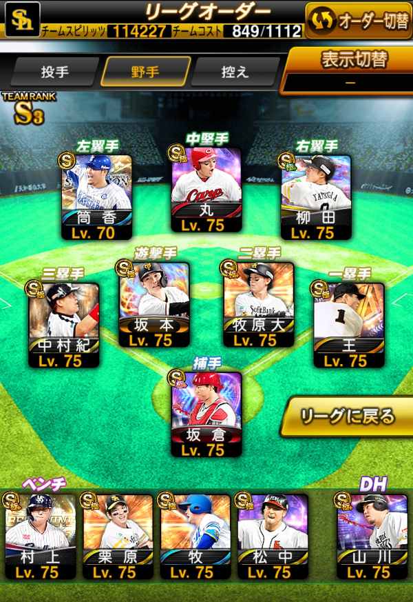 中村紀 熱気坂倉 TS丸 王貞治 坂本 TS松中 熱気山川 落合 柳田 牧 セレ浅村 セレ筒香