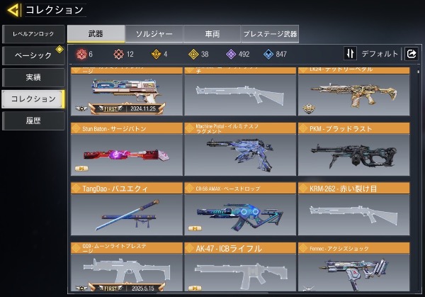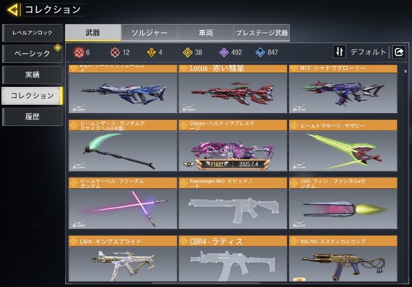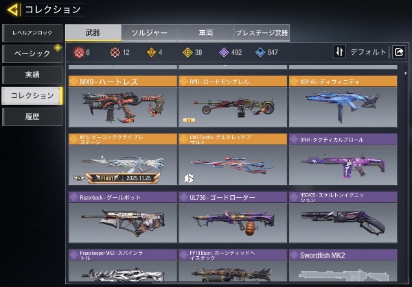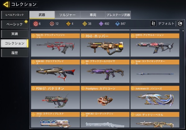 ミシック武器19所持、15種MAX。...