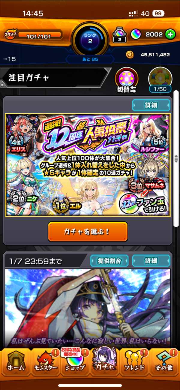 人気投票ガチャ未使用。