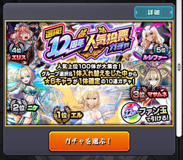 12周年人気投票ガチャあり
