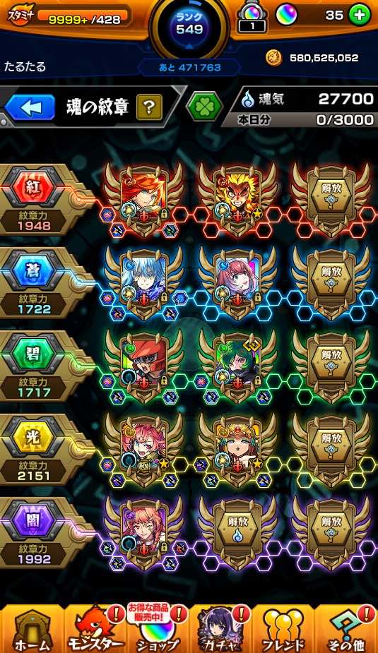 このアカウントを使わなくなってしまったので、お売り致します。紋章力は1500以上は全て超えています!デティアカルは貸しモン等でも使用可能です。守護獣もパックやキュウベェ等の強い守護獣も所持しております。
