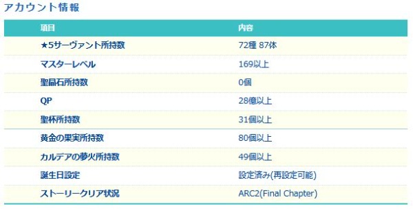 FGO-☆5×58種69体 121LVアカウント