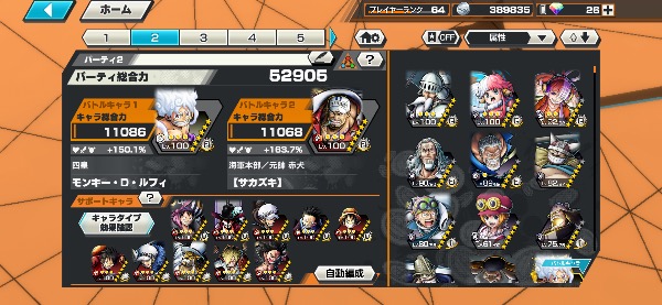 ワンピース バウンティラッシュ 最強白ニカ✨環境超フェス100レベ大量❗️超フェス19体❗️総合力54000以上❗️|マツブシマーケット