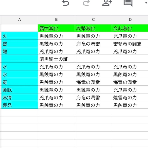 (太刀の強いと言われてるスキルを厳選してあります。龍のみヌシの魂×暗黒騎士も属性激化で作ってあります。耐龍が優秀な装備がベイルαだったので実装予定の歴戦王アルシュベルドにでも使ってください。ヌシの魂とのスキルの組み合わせは別画像参照。復元ボーナスについては属性激化のみつけてあります。)