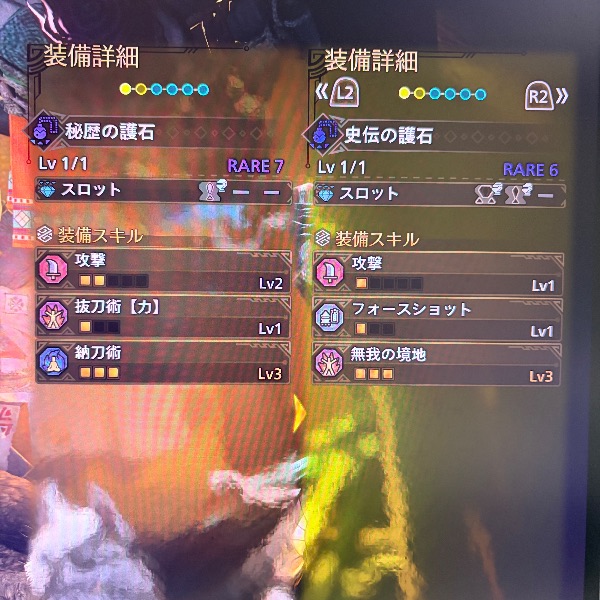 鑑定護石(納刀Lv3,攻撃Lv2,抜刀術(力)Lv1,防具スロ1×1)
