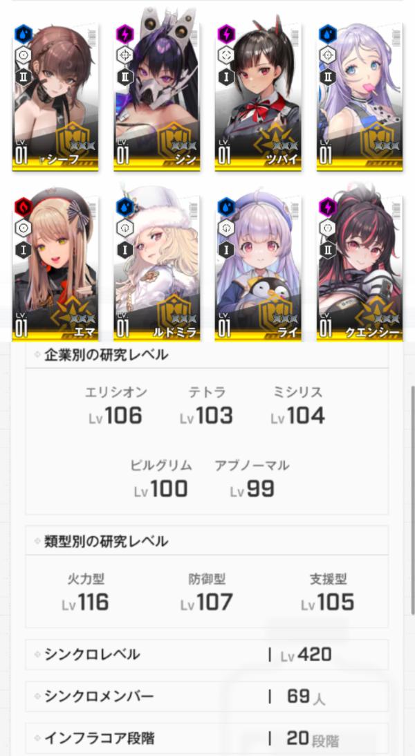 [引退アカ] 8体完凸 戦力1052K...