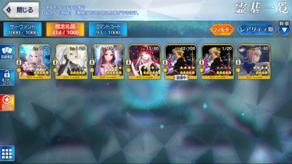 引退垢 星5鯖:63体 聖晶石:202個