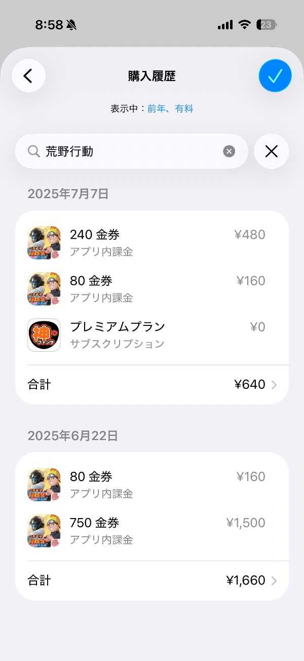 過去1年分くらいの課金履歴は有りますでしょうか??