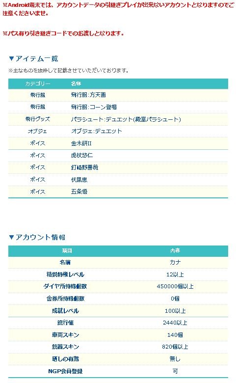 荒野行動アカウント