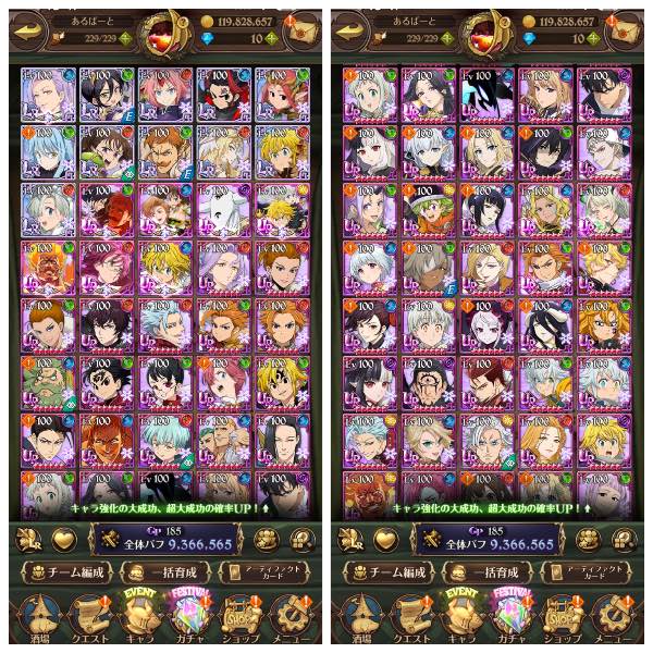グラクロ(七つの大罪 光と闇の交戦)であなたへおすすめのアカウントデータ