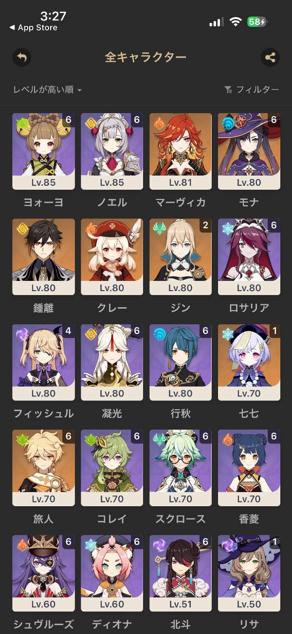 鍾離5凸 ジン2凸 胡桃1凸 ディ...