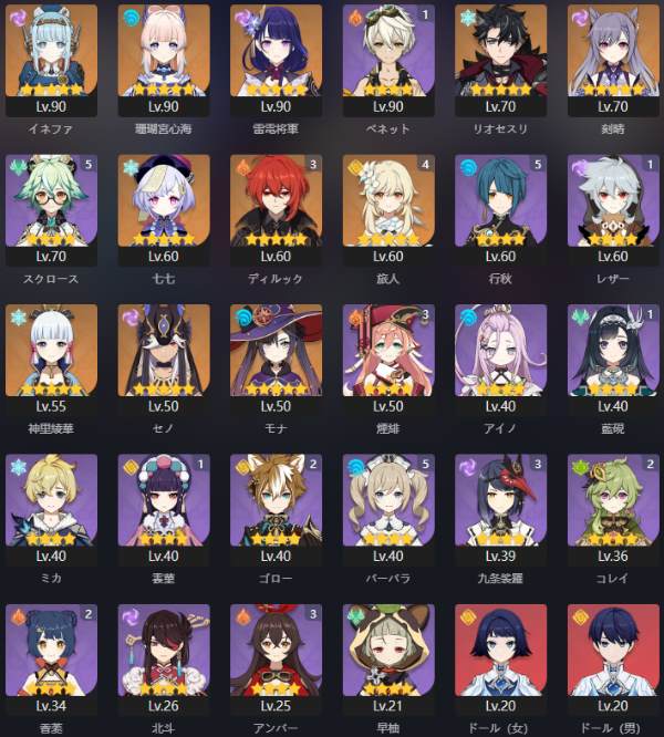 原神 星5キャラ11名(旅人・ドー...