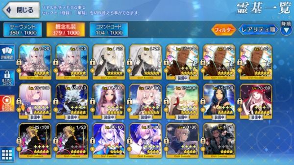 引退垢 星5鯖:63体 聖晶石:202個