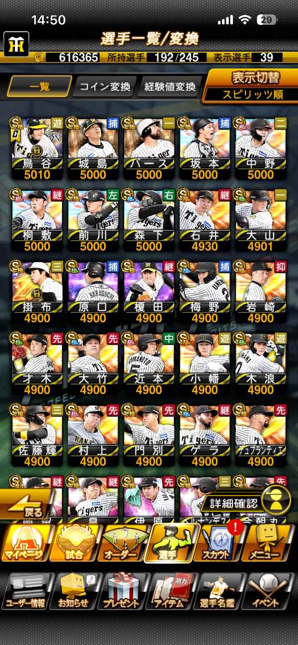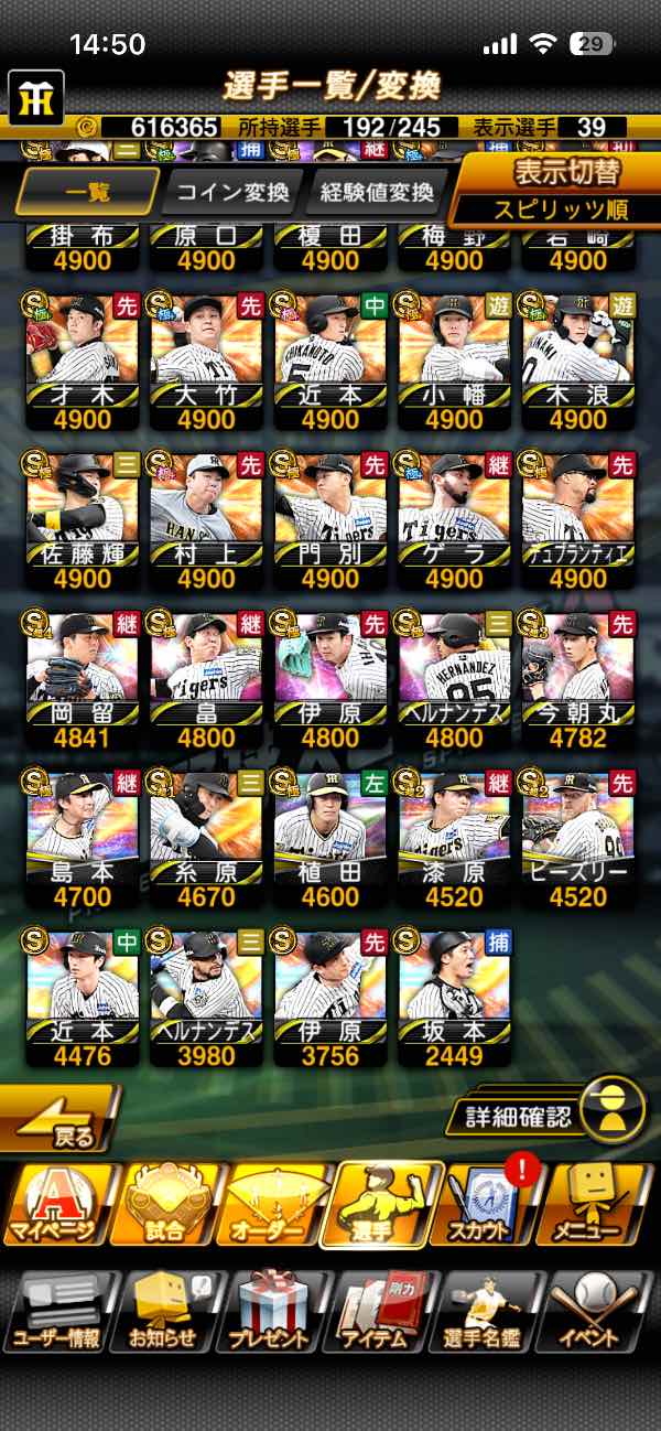 プロスピ巨人純正育成でSS可能