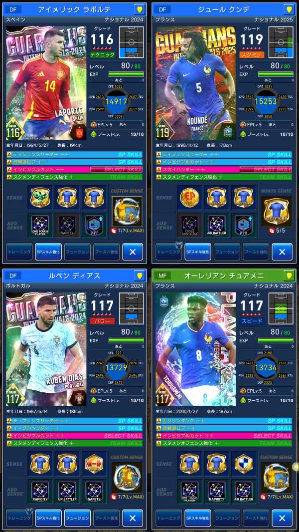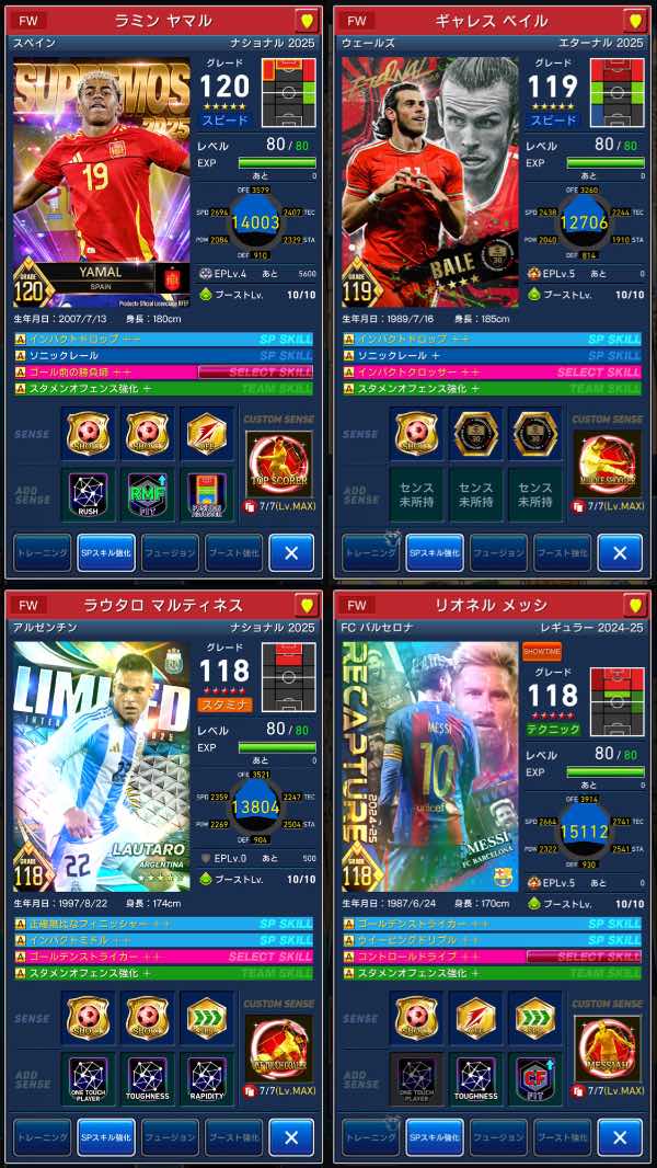 各ポジションスキル強化A複数所持です