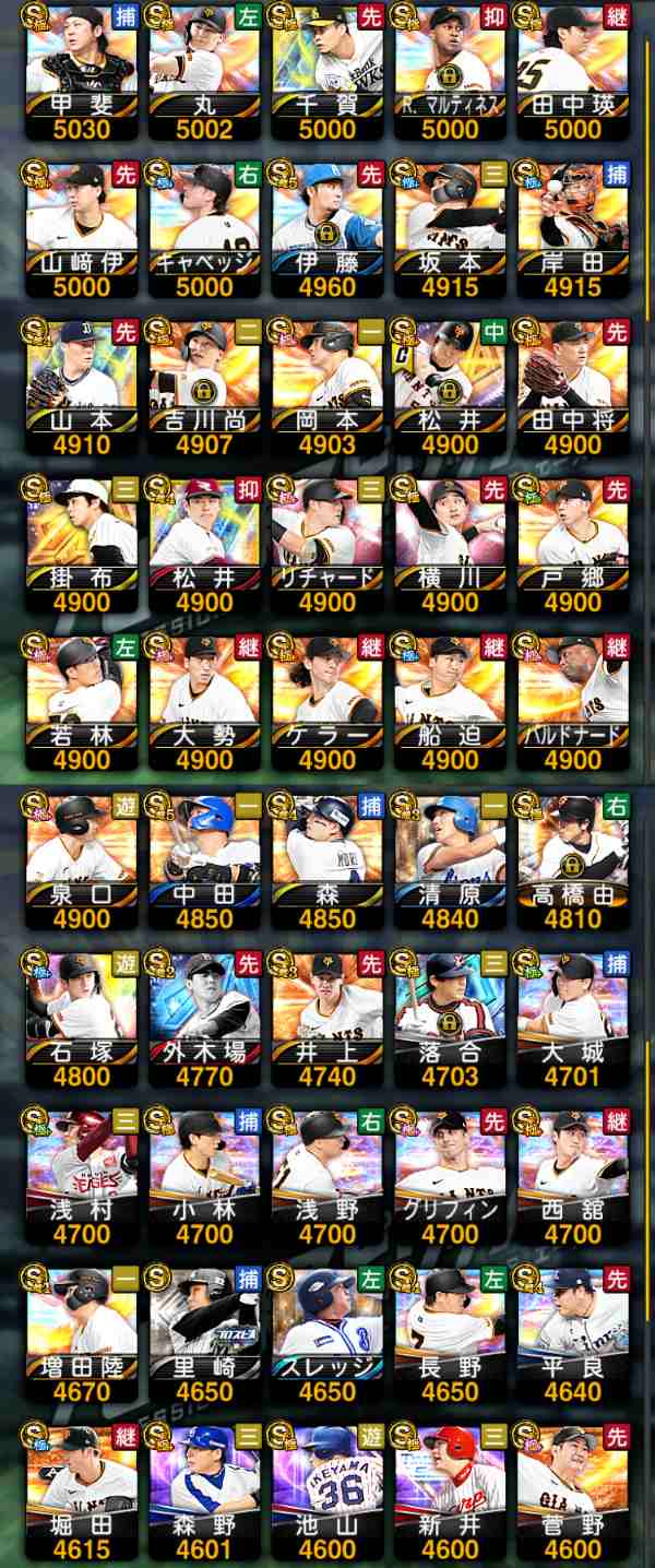 プロスピ巨人純正育成でSS可能