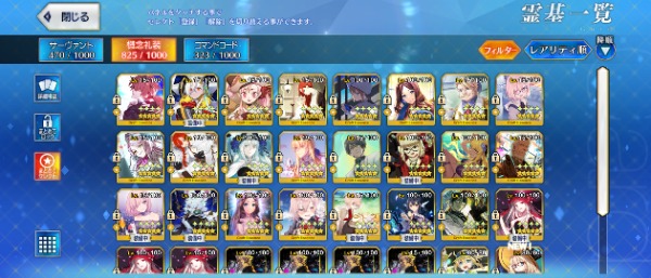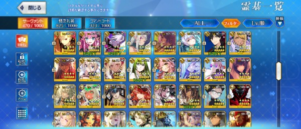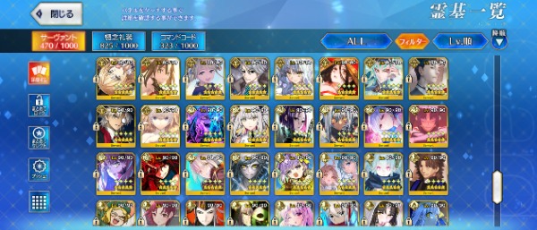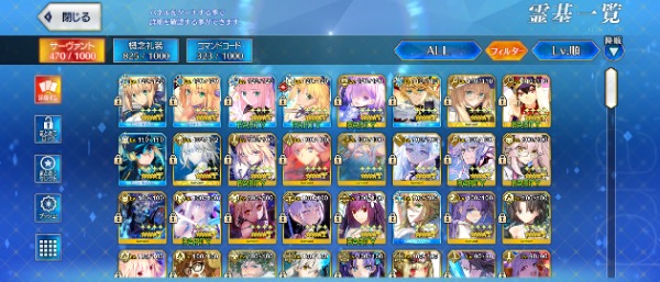宝具Lv5 10騎(モルガン・キャストリア・バサキャス他)、宝具Lv4 13騎(ログレス・オルガマリー・弓王他)、宝具Lv3 21騎(術モルガン・狂伊吹童子・アーキタイプアース・ファンタズムムーン・玉兔他)