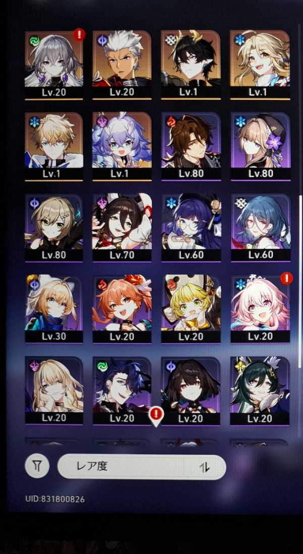 アーチャー、丹恒・騰荒は未育成です。