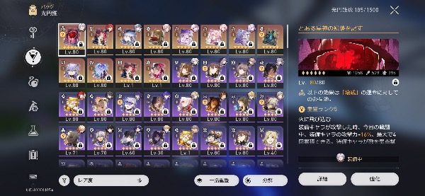 スタレでは記憶パが組め今の環境でも十分やっていけると思います。キャストリス餅有り、長夜月餅有り、ヒアンシー餅有り、サンデー1凸餅有り、トリビー、ファイノン、黄泉、モーディス、ホタル、マダムヘルタなどがいます。裏庭、虚構、末日でも十分に勝てるので石がたくさん回収できます。