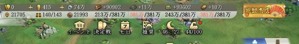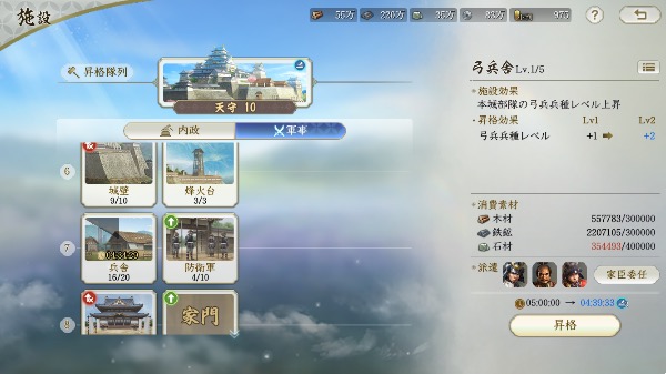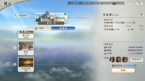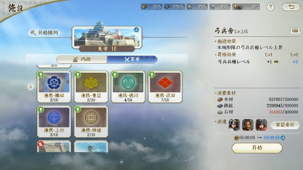 武田信玄Lv47、威信21000以上、建築レベル4、その他3