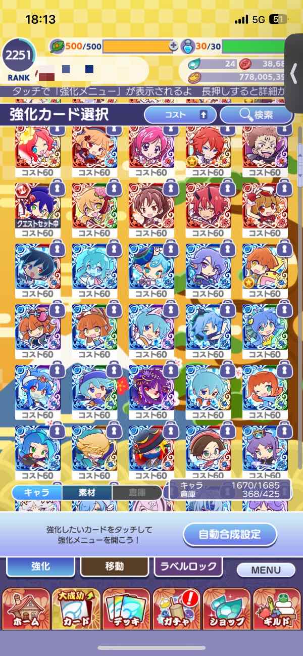 【廃課金垢】コスト64以上60体所持 リボトロ有