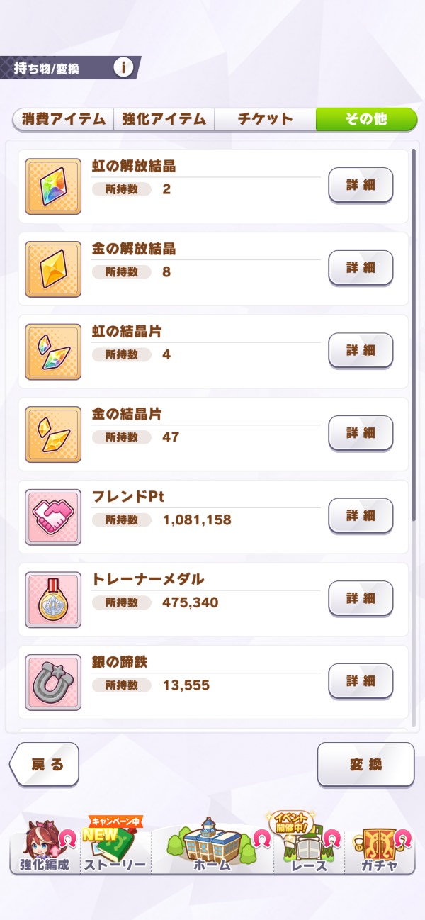 • 育成ウマ娘ガチャチケット: 13