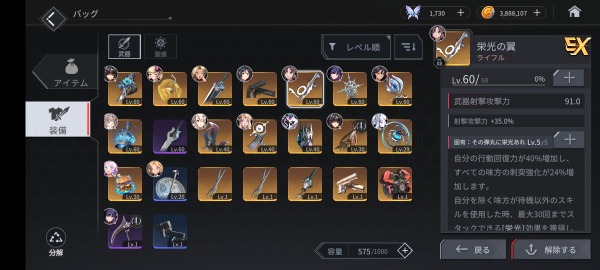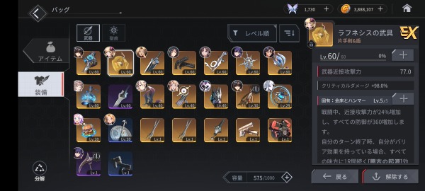 ・回避系単体強キャラレア完凸、レア専用武器完凸