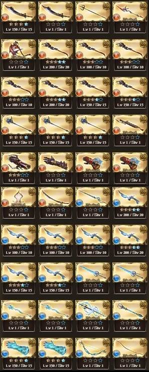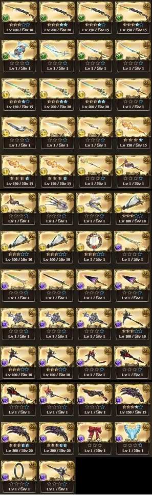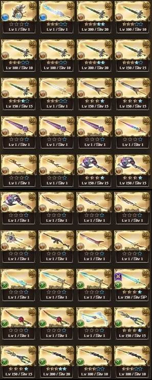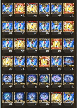 配布凸武器大量(シエテ剣、マグナ5凸、レガリア4凸、火方天画戟、ウルリクムミ、天羽々斬、エクスカリバー等)