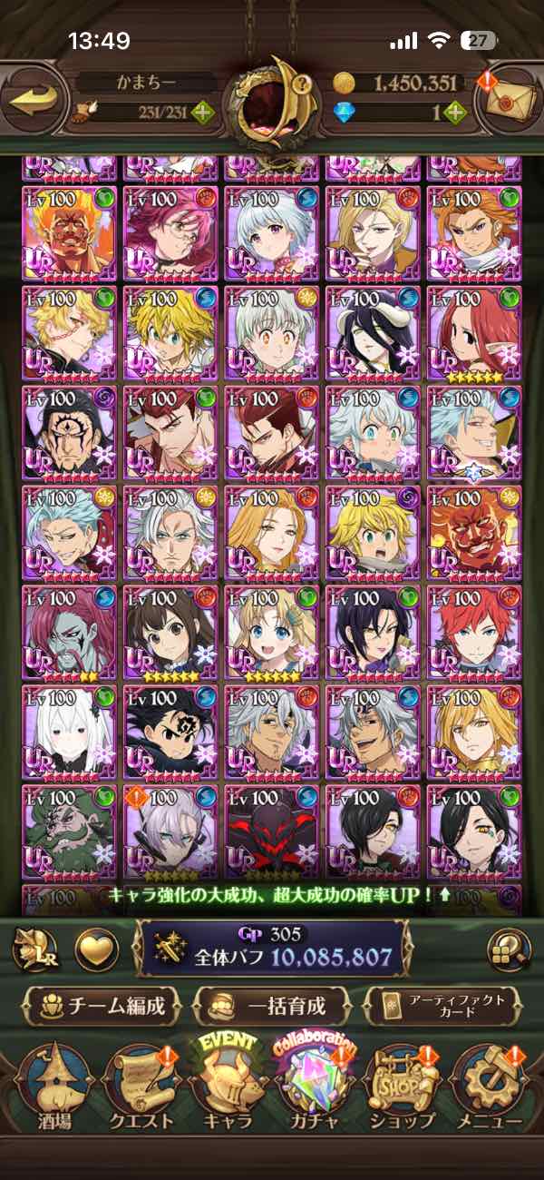 グラクロ(七つの大罪 光と闇の交戦) 全体等級1000万越え 古参アカウント|マツブシマーケット