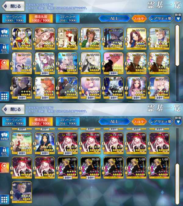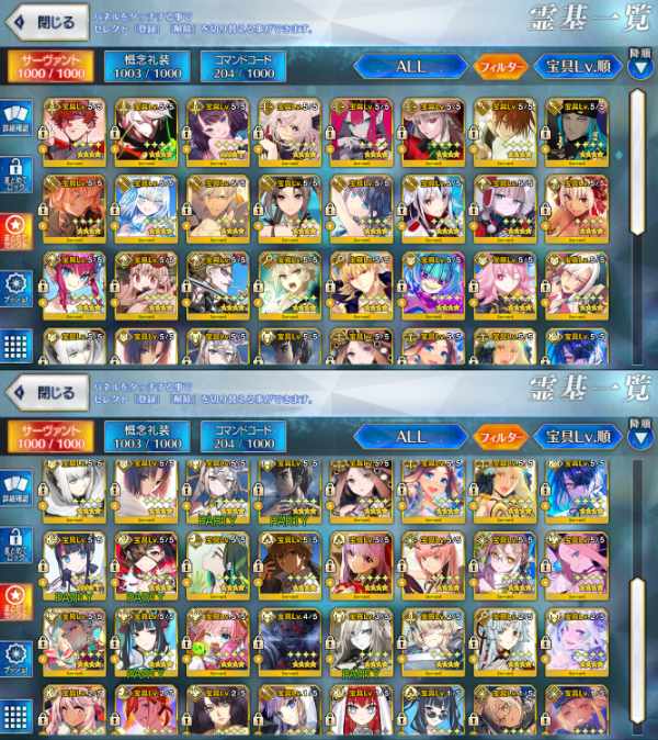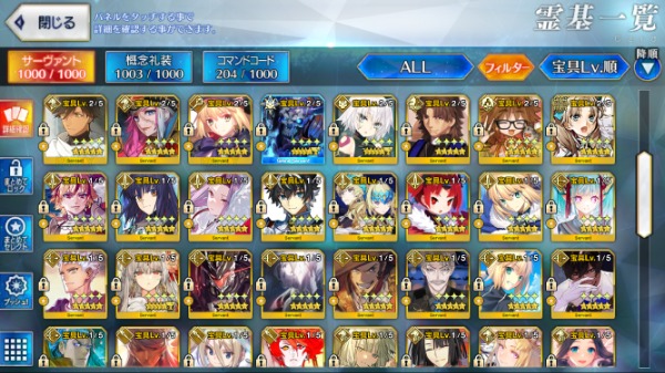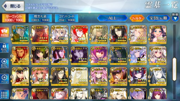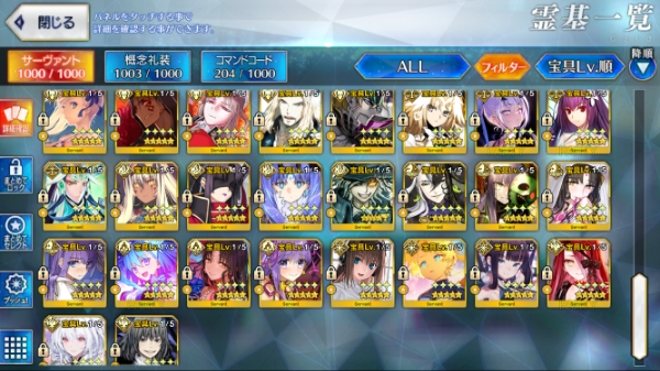 (★5 宝具5鯖17種・Lv120鯖12種...