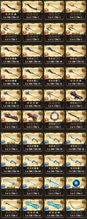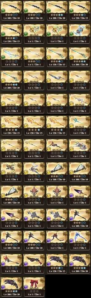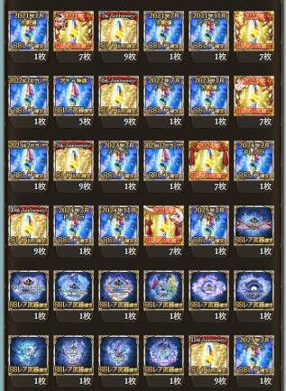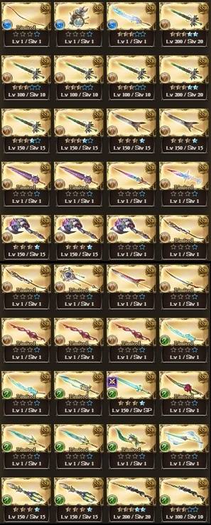 配布凸武器大量(シエテ剣、マグナ5凸、レガリア4凸、火方天画戟、ウルリクムミ、天羽々斬、エクスカリバー等)